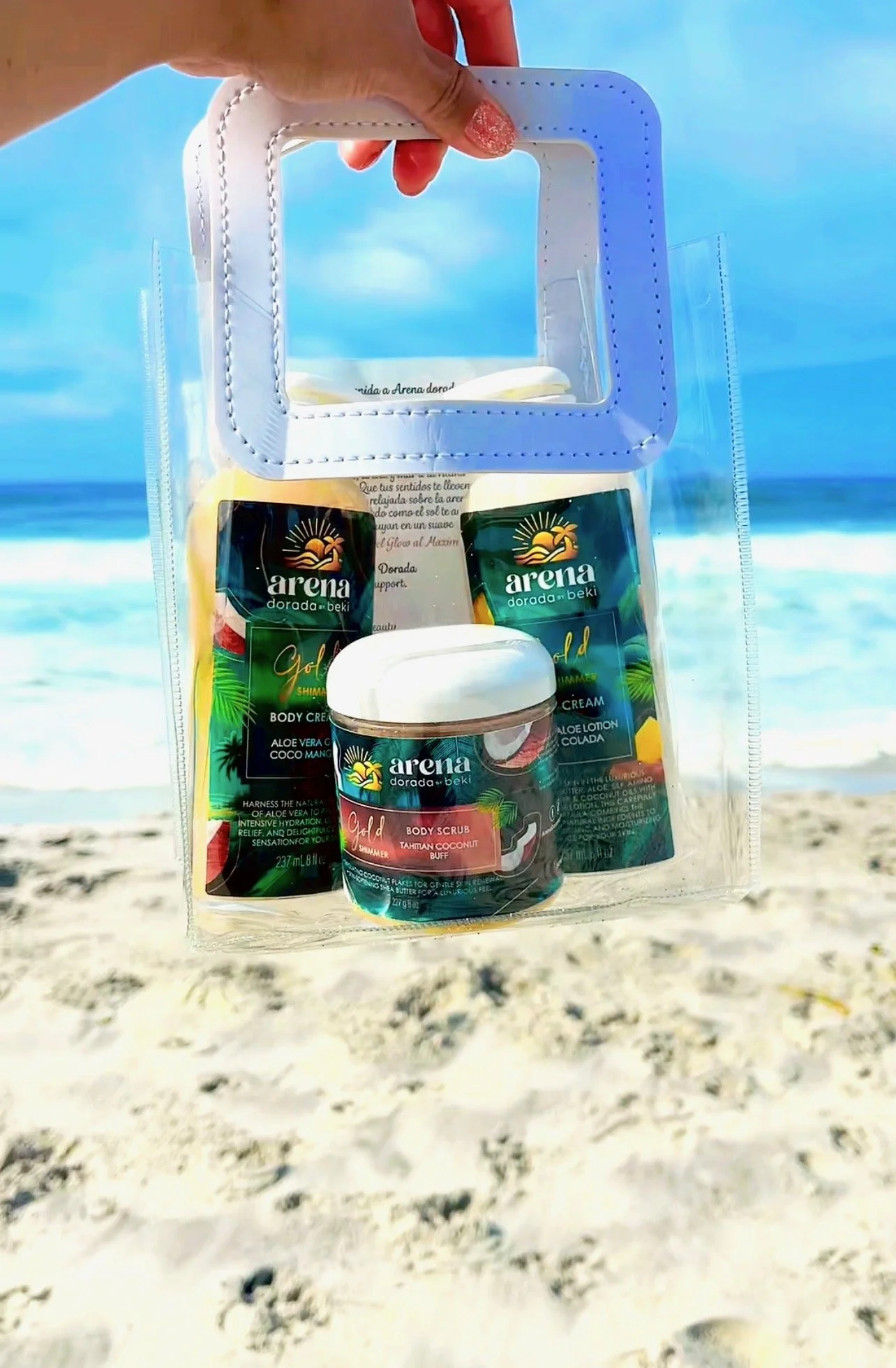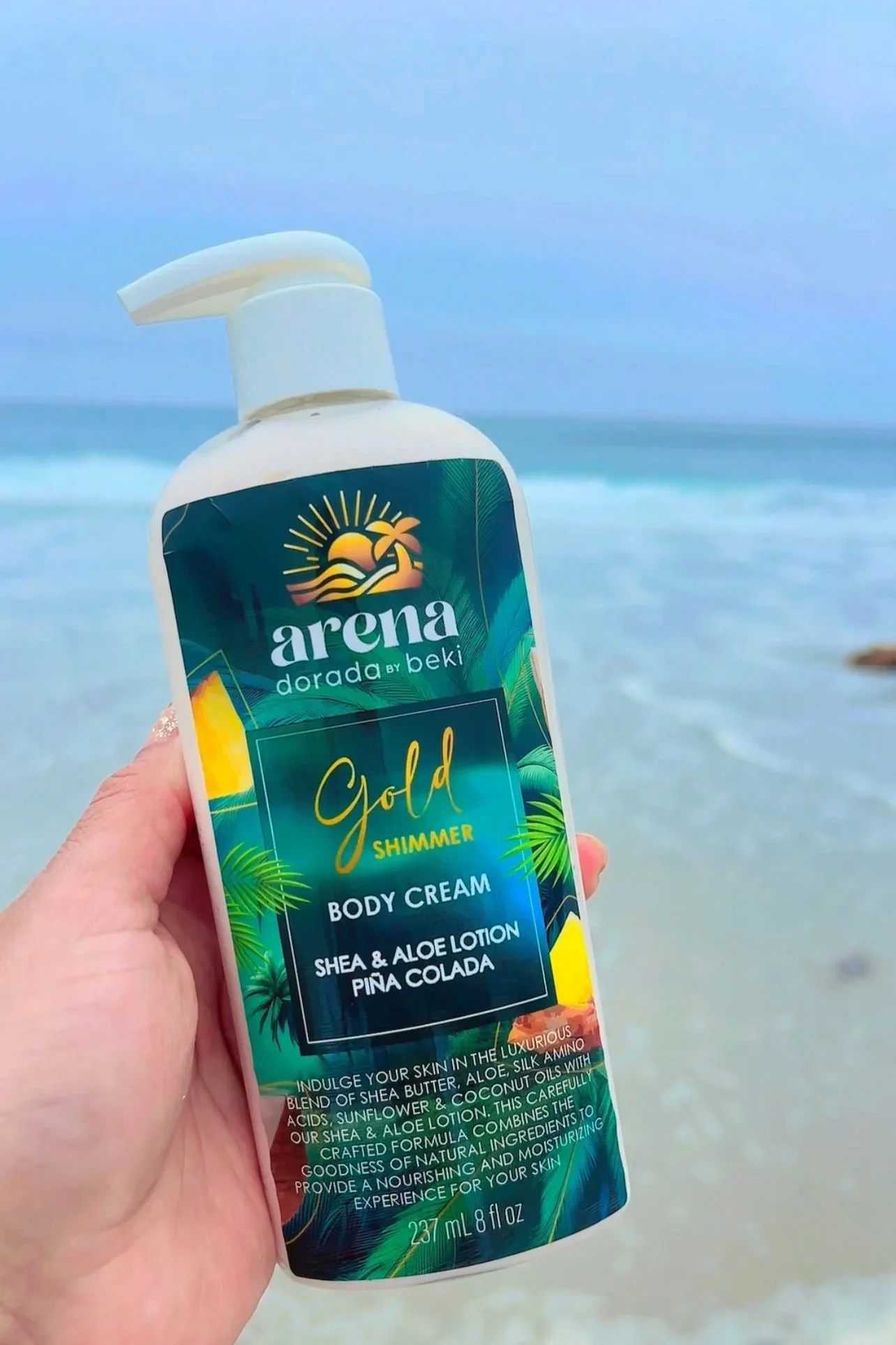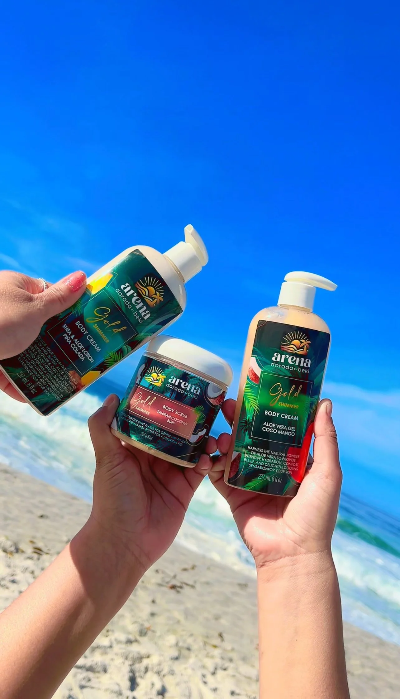 Aloe Vera Gel - Coco Mango - Gold Shimmer - 8 oz Sale Price: $25.00 Original Price: $35.00 Sale Shea & Aloe Lotion - Pina Colada - Gold Shimmer - 8 oz Sale Price: $25.00 Original Price: $35.00 Sale Tahitian Coconut Buff - 8 oz Sale Price: $25.00 Original Price: $35.00 Sale ARENA DORADA SET Sale Price: $38.00 Original Price: $105.00 Sale